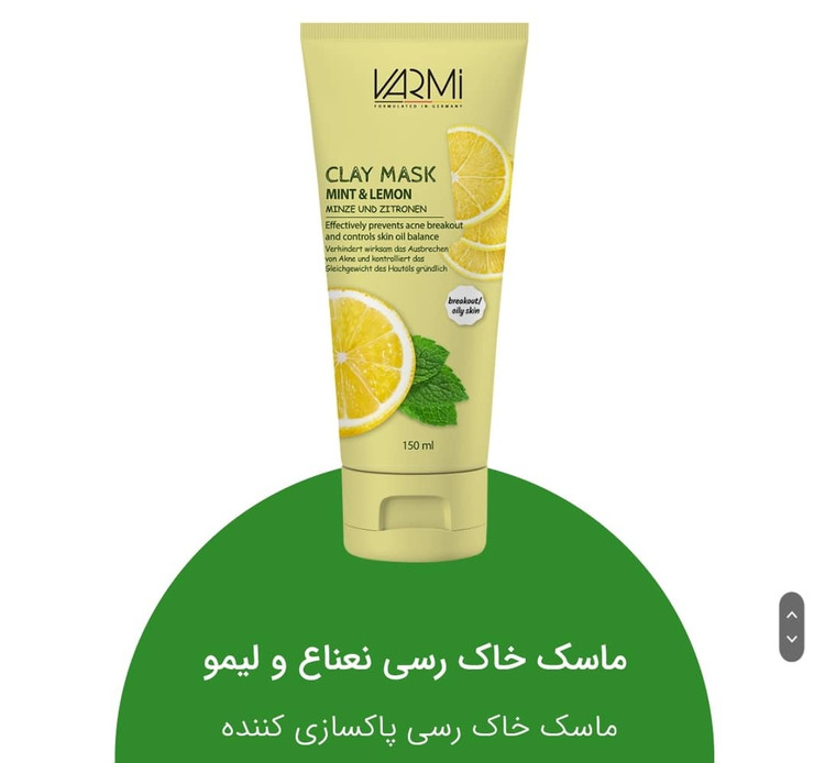 ماسک صورت خاک رسی لیمو و نعناع وارمیحجم 150 میلی لیتر