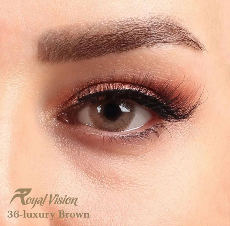 لنز رنگی رویال ویژن روزانه 100 ساعته، شماره 36 مدل Luxury Brown هاله دار قهوه ای لاکچری